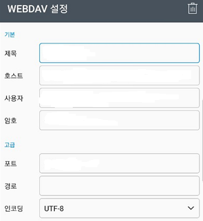 포트 : 55000 (webdav 포트를 다르게 지정했다면 해당 포트 번호 입력)