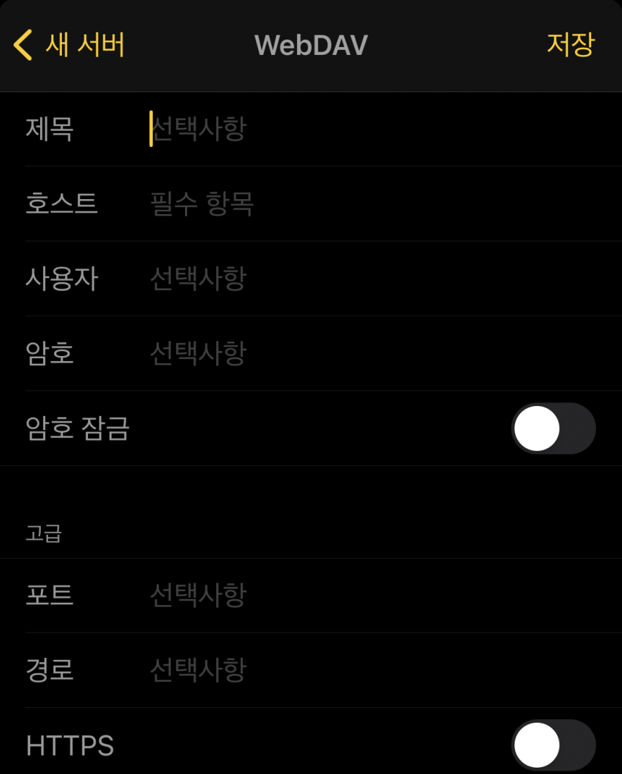 HTTPS : webdav 구축 당시 http 로 구축했다면 그냥 두고, https 로 구축했다면 토글을 켜줌